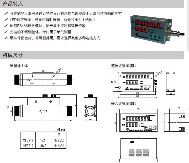 MF5212測量(liang)氧氣的流(liu)量計