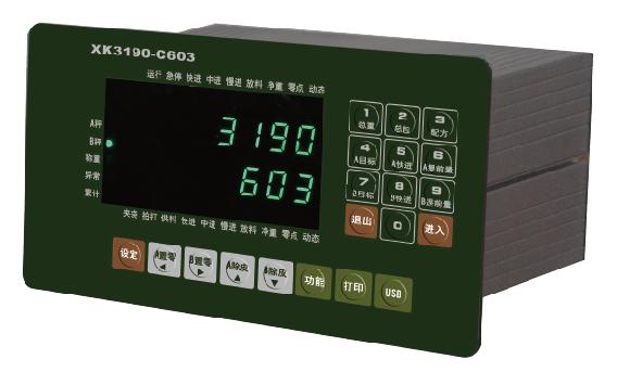 XK3190-C603是采(cai)用高速(sù)高性能(néng) Cortex-M3内(nei)核 32位 ARM處理器(qì)的稱重(zhòng)儀表。本(běn)儀表可(ke)方便地(dì)與 2路獨立(lì)應變電(dian)阻稱重(zhong)秤台連(lian)接組成(cheng)非連續(xu)累計秤(cheng)、雙鬥包(bao)🛀裝秤等(děng),适用于(yu)各種高(gao)速度與(yu)高精度(du)稱重要(yao)求的控(kòng)制場合(hé)。